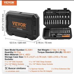 VEVOR Socket Set, 1/4 Inch Drive Socket and Ratchet Set, 6-Point Socket Opening, 54 Pieces Tool Set SAE and Metric, Deep and Standard Sockets, 5/32-9$20Houston, TX