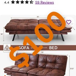 Twin 70.5" Wide Faux Leather Tufted Back Convertible Sofa Brown$100Houston, TX