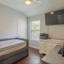 Bed Frame + Bed Mattress (Free), Desktop, Tv Desk !$500Houston, TX