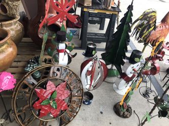 Metal yard art, clay pots, macetas and home decor.$1Houston, TX