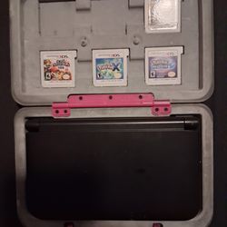 Nintendo 3DS XL with 4 games (Pokémon X, Pokémon Moon, Super Smash Bros, New Super Mario Bros. 2).