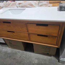 Vinespring 48 in. Single Sink Wood Tone Bath Vanity with White Marble Top (Assembled)