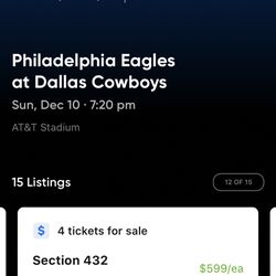 Cowboys vs giants sec 218 row 7 (4pack) $1050 all 4$600Dallas, TX