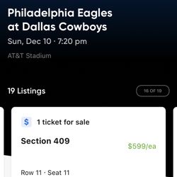 Many Good Tickets & Parking For Philadelphia Eagles @ Dallas Cowboys Tickets$580Irving, TX