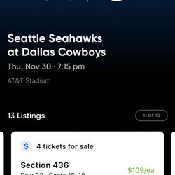 Many Great Tickets And Parking For Seattle Seahawks @ Dallas Cowboys Thursday Night$90Irving, TX