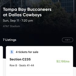 Cowboys Vs Tampa $2400 for the pair $2,400Dallas, TX