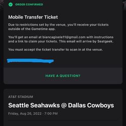 Cowboys vs Seahawks Sec 114 row 20 (4pack) With parking lot 11 $400 for everything$400Dallas, TX