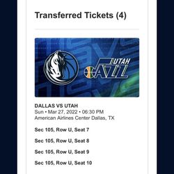 (4) Dallas Mavericks Vs Utah Jazz Playoff Tickets Tonight $130 Each Sec 307$130Irving, TX