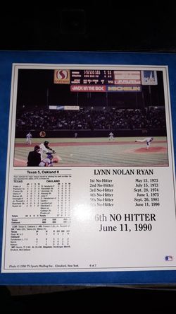 Nolan Ryan 6th No Hitter June 11, 1990$15Denton, TX