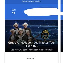 GRUPO ARRIESGADO 11/26/22 PLATINUM LEVEL 8 TICKETS $125 EACH $125Dallas, TX