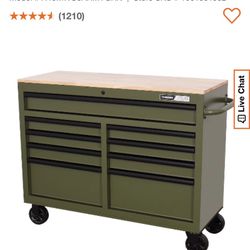 Husky Standard-Duty 46 in. W 9 Drawer Glossy Army Green Mobile Workbench Cabinet with Solid Wood Top. New! $400 Location: Arlington Se Habla Español$400Arlington, TX