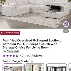Oversized U shaped sectional sofa bed with storage chaise$600Arlington, TX