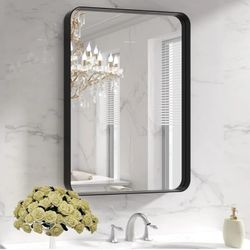4645: New Black Metal Framed Bathroom Mirror for Wall, 22X30 Inch Rounded Rectangle Mirror, Matte Black Bathroom Vanity Mirror$40Red Oak, TX
