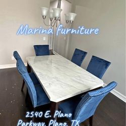 Rectangular Wood Dining Table Set Marble Effect Top Dark Brown Beige 6 Chairs$180Dallas, TX