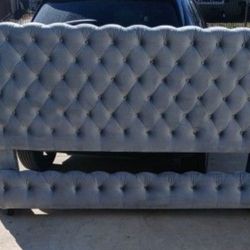 Living Spaces King Gray Velvet Upholstered Bed Frame$500Cross Roads, TX