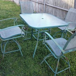 Outdoor Glass top Bar/Pub/Tall green table and 4 chairs$50Arlington, TX