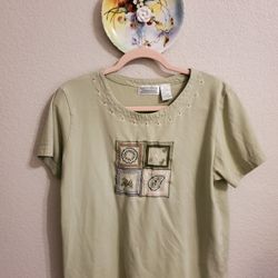 Short-sleeve embroidered top in a light sage green color.$5Fort Worth, TX