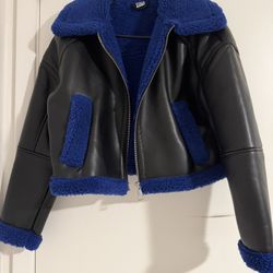 Trendy Cropped Leather Jacket – Black & Blue Fur – Stylish Winter Jacket$15Arlington, TX