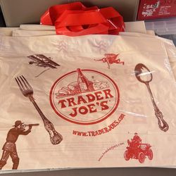 Trader Joe's Reusable Shopping Bag Foldable LDPE Beige Red All-Over Pattern$15Arlington, TX
