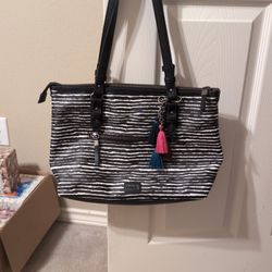The Sak Black and White Striped Tote Bag with Tassels.$15Roanoke, TX