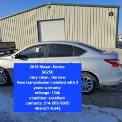$6260 For 2019 Nissan Sentra, Excellent Condition, New Transmission With 3 Years Warranty $6,250Dallas, TX