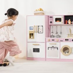 Play Kitchen Sets for Kids, Pretend Wooden Kids Kitchen Playset, Interactive Toy Kitchen with Freezer, Washing Machine, Ice Maker & Large Storage Spac$100Grand Prairie, TX