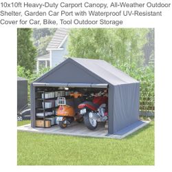 10x10ft Heavy-Duty Carport Canopy, All-Weather Outdoor Shelter, Garden Car Port with Waterproof UV-Resistant Cover for Car, Bike, Tool Outdoor Storage$200Grand Prairie, TX