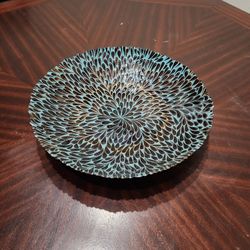Large Art Glass Centerpiece Bowl - Teal & Bronze Teardrop Design$50Plano, TX