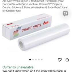 Ant Ivory White 25inch x 100ft Smart Permanent Vinyl Compatible with Cricut Venture, Create DIY Projects, Decals, Stickers & More, All-Weather & Fade-$40Grand Prairie, TX