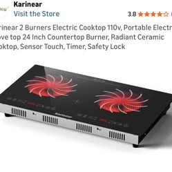 Karinear 2 Burners Electric Cooktop 110v, Portable Electric Stove top 24 Inch Countertop Burner, Radiant Ceramic Cooktop, Sensor Touch, Timer, Safety $80Grand Prairie, TX