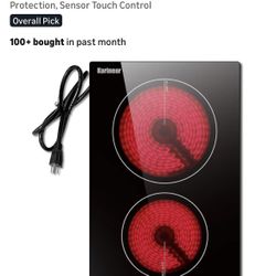 Karinear 110V Electric Cooktop 2 Burners Electric Stove 12 Inch Knob Control Countertop & Built-in Ceramic Cooktop, 9 Heating Level, Hot Warning, Over$80Grand Prairie, TX