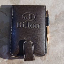 Vintage Hilton Hotel's branded faux-leather notepad holder with gold tone mini mechanical pencil and a Vitronic paper refill.$15Euless, TX