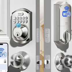 TEEHO TE012W-K WiFi Smart Keyless Entry Door Lock with Handle, Fingerprint Door Knob & Digital Keypad, APP Remote Control, Works with Alexa & Google, $65Garland, TX
