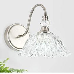 2834: New 1 Piece Brushed Nickel Wall Sconce with Floral Clear Glass Shade, Brushed Nickel Finish Wall Mount Lighting for Bathroom, Modern Bathroom Va$50Lancaster, TX