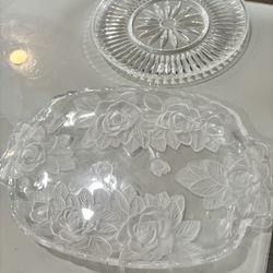 CELEBRATION LAURA GLASS 3 CLEAR EMBOSSED GLASS PEDESTAL SERVING PLATES ~BOX~$50Dallas, TX