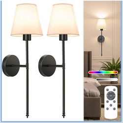 NIORSUN Battery Operated Wall Sconce Set of 2,Black Rechargeable Wall Lights with 5200mAh Dimmable Detachable Bulbs and Remote, 9 Colors Wireless Wall$35Garland, TX