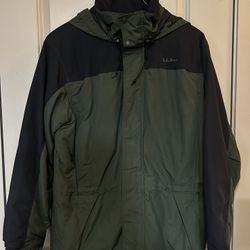 L.L. Bean Jacket Vintage Green/Black Hood Zip Snaps Insulated Size M $60Richardson, TX