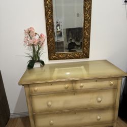 Antique white dresser with matching mirror.$200Flower Mound, TX