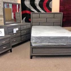 Brand New/ Gray Sleigh Bedroom Set// Dresser, Mirror, Nightstand, Bed// Mattress Sold Separately $670Dallas, TX
