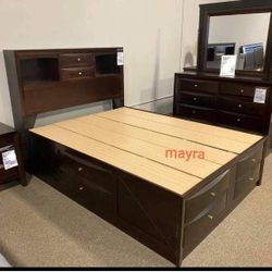 Brand New// Dark Cherry Storage Platform Bedroom Set/ Dresser, Mirror, Nightstand, Bed// Mattress Sold Separately $1,350Dallas, TX