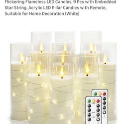 NEW! Flickering Flameless LED Candles, 9 Pcs with Embedded Star String, Acrylic LED Pillar Candles with Remote, Suitable for Home Decoration (White)$25Garland, TX