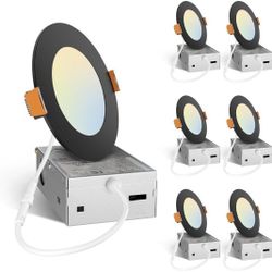 Amico 6 Pack 4 Inch 5CCT Ultra-Thin LED Recessed Ceiling Light with Junction Box, 2700K/3000K/3500K/4000K/5000K Selectable, 11W Eqv 70W,$25Sugar Land, TX