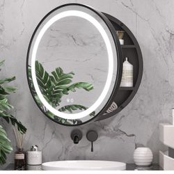 24 In Black Round Lighted Medicine Cabinet for Bathroom with LED Mirror Metal Framed Electrical Outlet 3 Color Lights Anti-Fog Dimmable Wall Mounted C$195Katy, TX