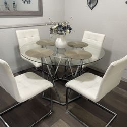 Hermoso Comedor !!! De 4 Sillas En Piel Blanca Mesa De Vidrio Y Base De Metal Plateado En Muy Buen Estado $250Houston, TX