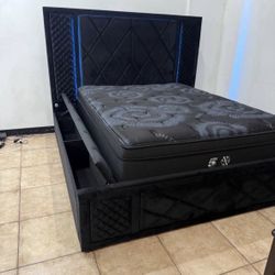NEW IN BOX- Black Velvet Platform/ Storage Bed Frame King & Queen Size LED LIGHTS & BLUETOOTH$649Houston, TX