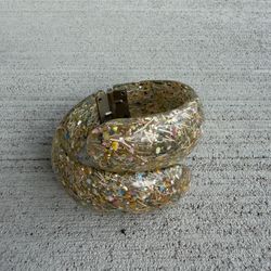 Vintage 1950s Lucite Confetti Clamper Bracelet Hinged Chunky Bangle Gold Glitter$75Houston, TX
