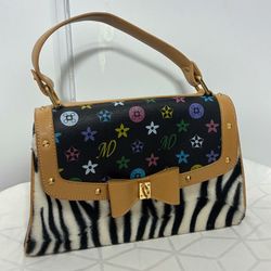 Multicolor Pattern Black Top-Handle Satchel with Tan Trim and Bow $23Houston, TX