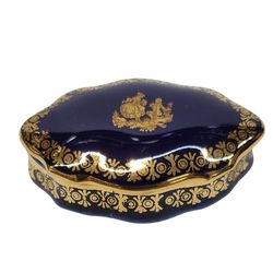 Vintage Limoges Cobalt Blue Glaze Porcelain Tiny Trinket Box. Gold Gilt Accents. France $15Houston, TX