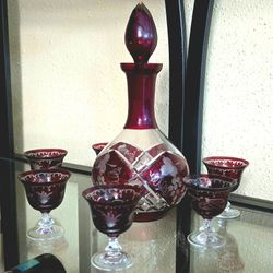 Antique Bohemian Egermann Red Cut to Clear Decanter & 6 Glasses set$195Katy, TX