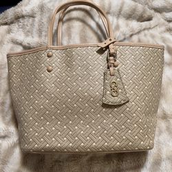 Call Hahn cream and tan basket weave pattern top handle purse$50Houston, TX
